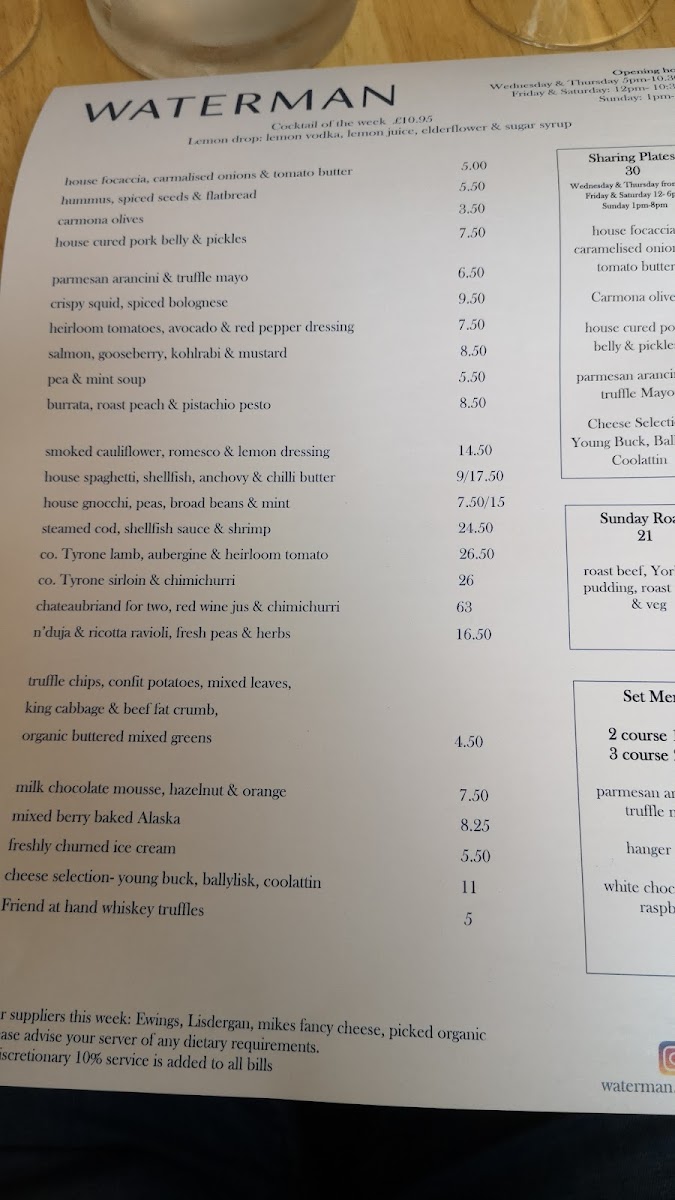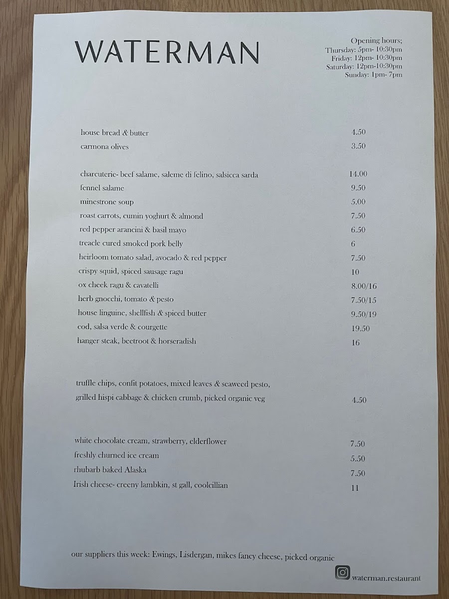 Waterman Restaurant Menu